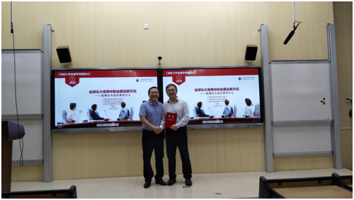 韩力光副书记(主持党委工作)为张敏教授(右)颁发冬季小学期授课专家聘任证书