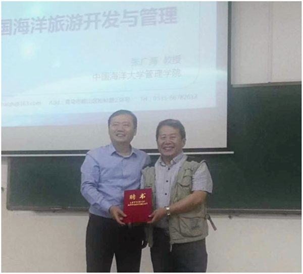 2020年1月初,按照学校安排,我院顺利地展开了一系列冬季小学期授课活动。在海洋海岛旅游方面的专题授课,我院特邀请了来自中国海洋大学的张广海教授为2018级旅游管理专业的学生进行讲授。1月4日上午,我院党委韩力光副书记(主持工作)亲临授课现场,为张广海教授颁发冬季小学期专家聘书,并代表学院对他的到来表示热烈欢迎。