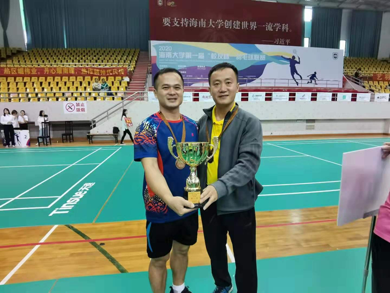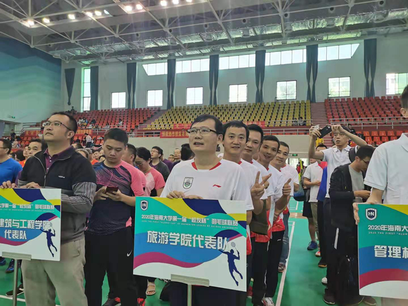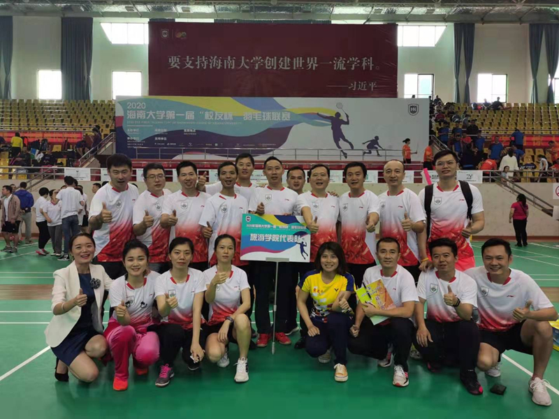 2020年1月4-5日,海南大学第一届“校友杯”羽毛球联赛在学校联谊馆拉开帷幕,共有来自海南大学各个学院以及各界校友组成的16支队伍参加比赛。本次比赛由海南大学校友会主办,海南大学海口校友会、海南大学体育学院联合承办。比赛采取混合团体赛方式,设置男双(45岁以上)、混双、男双、混双、男双5个项目。旅游学院在院党委韩力光副书记(主持工作)和侯佩旭副院长的带领下,组织由20多名在校教师和各界校友组成的代表队参加比赛。经过全体队员的顽强拼搏,旅游学院先后战胜了食品科学与工程学院、土木建筑与工程学院代表队,最终获得团体比赛第八名的佳绩。