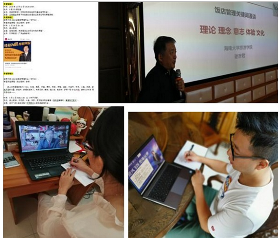 二、多形式开展“停课不停学”,确保教学质量。学院充分利用校内外优质资源,通过线上多渠道资源、线下学习多方式开展“停课不停学”教学活动,做到成教生和普通本科学生同培养、同要求。我院酒店人才项目成教(专升本)2020级酒店管理专业学生于2月24日已开始《应用文写作》、《思想道德修养与法律法规基础》、《计算机应用基础》等三门网络授课教学,18级和19级成教学生于3月9日开始多平台线上教学。在做好网络授课的同时,结合专业需求,学院充分利用线上优秀资源,开设网络直播《疫情后期,旅游酒店业如何应对危机管理》、《逆风飞扬 绝地反弹—文旅振兴公益在线巅峰大会》等系列线上专题讲座,并根据不同授课内容安排线上作业。