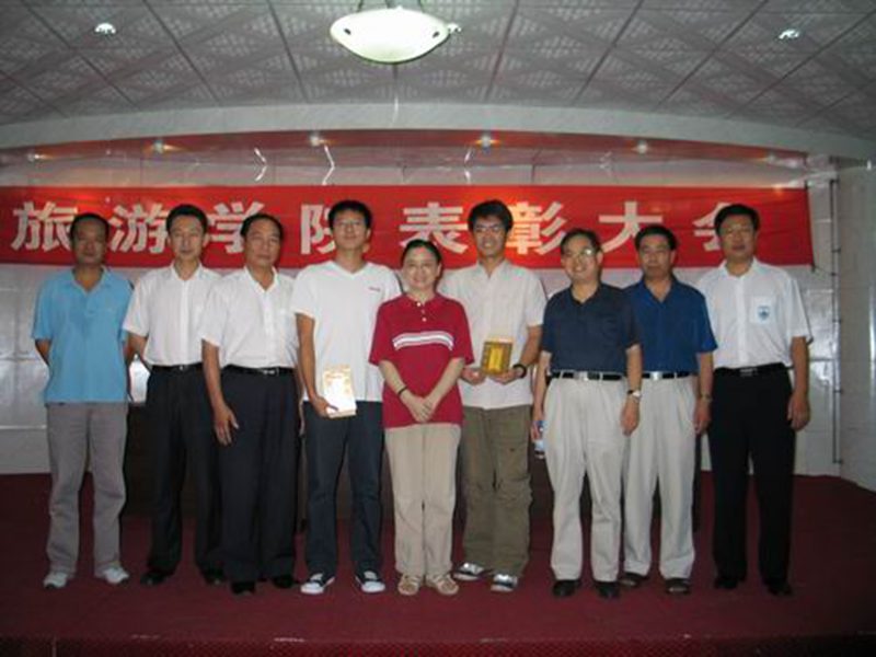 2005年7月7日下午,旅游学院在多功能厅召开表彰大会,对我院2003级旅游管理专业学生胡杨梓、吴佳在2005年6月25日举行的第六届“海南大学生英语演讲比赛”暨第四届“CCTV”杯全国大学生英语演讲比赛复赛(海南赛区)中,分别获得英语非专业组一等奖和三等奖的佳绩,以及冯源教授的悉心指导,给予表彰并奖励。