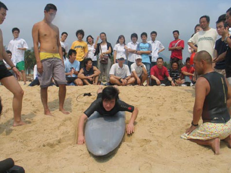 2006年3月10日,海南大学旅游学院03、04级旅游管理专业应用日语班的30名同学在辅导员李小冬和陈莉莉老师的带领下应邀参加了“2006中国海南冲浪培训暨冲浪表演”大会。本次大会由中国国家体育总局水上运动管理中心主办,邀请日本冲浪爱好者协会参加。大会在海南万宁市日月湾举行,为期两天,中央电视台与海南省的新闻媒体对此次大会进行了跟踪报道。通过此次交流与学习,同学们达到了解社会,提高日语口语表达能力的目的。我院学生的优秀表现也受到了与会日本友人的高度赞扬。