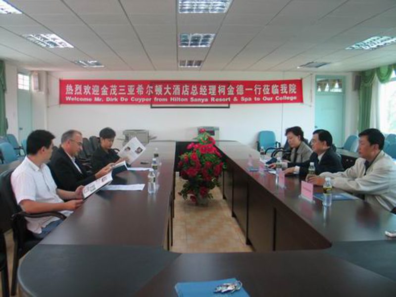 2006年3月16日下午,金茂三亚希尔顿大酒店外方总经理柯金德先生一行莅临旅游学院,就举办“希尔顿人才班”事宜进行了友好磋商。柯金德先生一行在参观了旅游学院办学设施及条件后,旅游学院院长安应民教授、副院长王琳副教授及院办、就业中心负责人与柯金德一行就双方如何共同培养酒店管理人才事宜进行了探讨,就培养方式、培养目标及培养要求初步达成了意向。