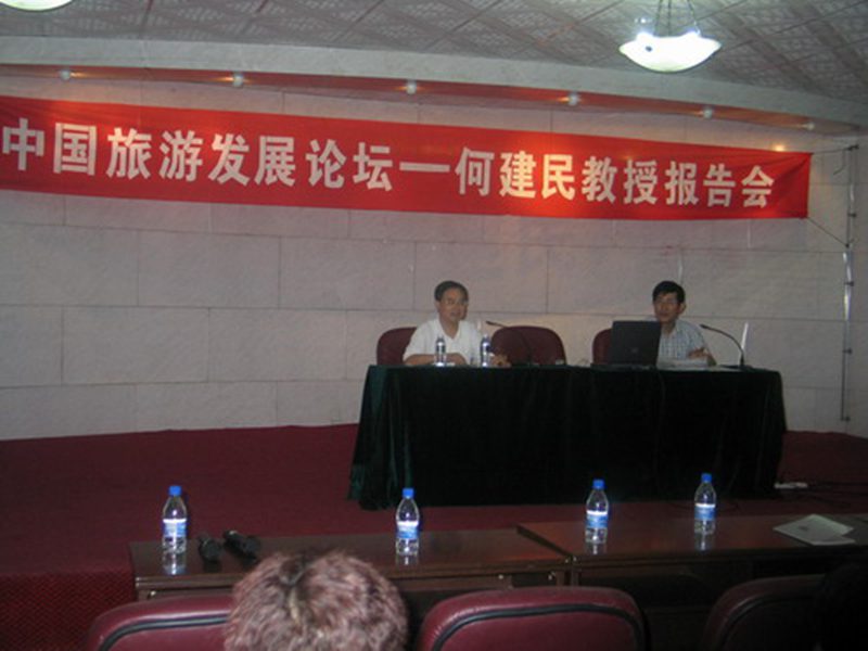 何建民教授学术报告会,是旅游学院举办“中国旅游发展论坛”的首场报告会。旅游学院院长安应民教授在主持报告会时指出,举办“中国旅游发展论坛”的宗旨是,研究中国旅游发展的热点问题,把握中国旅游发展的基本规律,展现旅游管理学科的最新成果,促进中国旅游产业的健康发展。今后,学院将通过不定期请国内外知名旅游专家、学者、政府官员、旅游企业界人士来院讲学,组织召开学术研究会,电视论坛等多种方式,整合各方资源,把“中国旅游发展论坛”做成海南乃至国内的一个品牌,切实促进中国旅游业的健康发展。