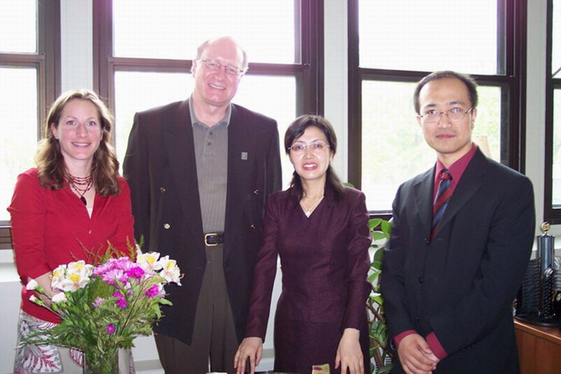 加拿大爱德华王子岛大学韦德校长(左二)与杨红老师(右二)合影