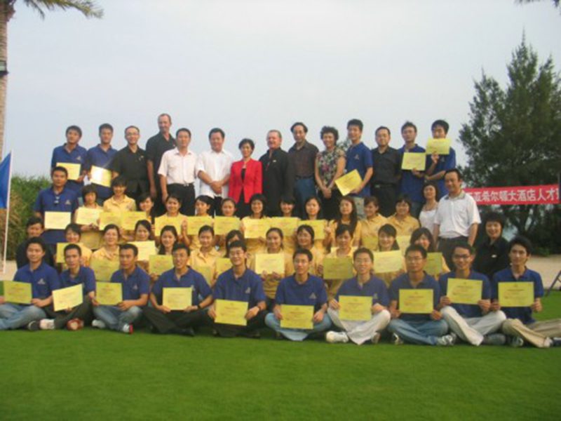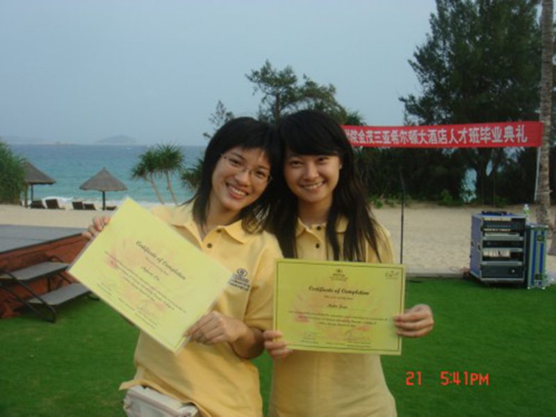 典礼会上,我院过建春院长还代表旅游学院给金茂三亚希尔顿大酒店参加授课的部门经理颁发了聘书,对他们的辛勤付出表示感谢!05级学生陆续从酒店总经理以及学院领导的手中接过实习结业证书将整个典礼会的现场气氛推向高潮。目前,第一批“希尔顿班”的学生已圆满完成在酒店阶段的实践实习并且都在酒店找到了适合自己的岗位,他们将在未来的日子里充分利用所学到的专业知识继续各自在酒店行业的发展。第二届“希尔顿人才班”的课程在顺利进行中,他们将在今年7月份按计划开始在酒店轮岗实习和培训。通过走出去的方式旅游学院正在不断努力,创建人才培养的品牌模式。