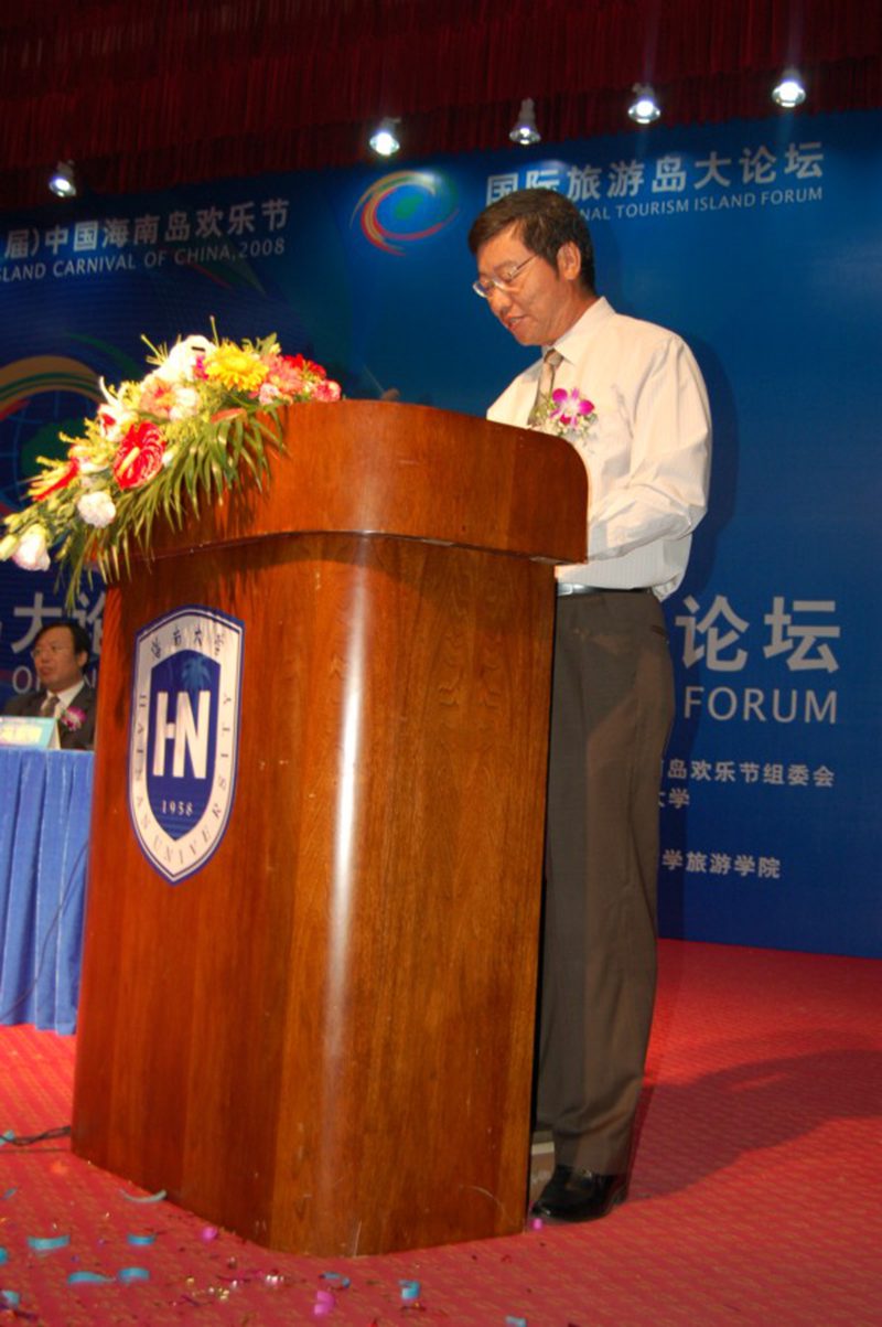 2008年 11月 18日的海南大学校园,秋风送爽、景色宜人。2008年(第九届)中国海南欢乐节活动之一的“国际旅游岛大论坛”开幕式暨首次论坛正在海南大学报告厅隆重举行。