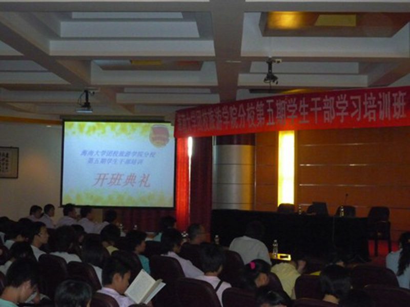 2009年3月21日旅游学院第五期团校在旅游学院多功能厅正式开班,旅游学院300多名新生干部参加了此次培训。