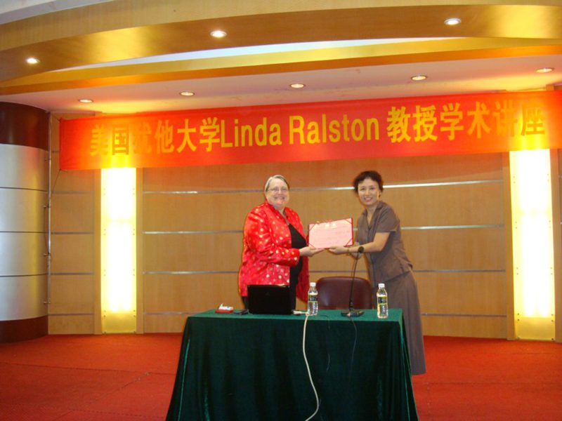 在讲座开始之前,旅游学院王琳院长为Linda教授颁发了聘书,聘用Linda教授为“旅游学院访问教授”。Linda教授将为海南大学旅游学院和美国犹他大学之间的友好合作与交流起到纽带的作用。