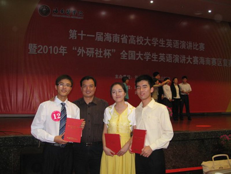 11月20日,第十一届海南省高校大学生英语演讲比赛暨2010年“外研社杯”(原“cctv杯”)全国大学生英语演讲大赛复赛(海南赛区)在海南医学院国际报告厅举行。来自全省七所本科高校36名选手参加了比赛。我院的三位选手经过院级、校级的选拔,最终代表海南大学参加省级决赛。经过为期一天的激烈角逐,邵天天、王梦斌同学夺得二等奖,贺元松同学夺得三等奖。