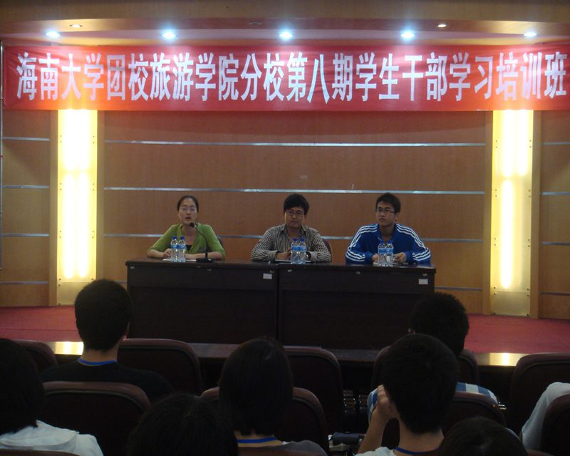 为了让10级新学生干部能够更好的学习和工作,从而使自己不断提高,服务于大众,2010年11月21日下午,在旅游学院二教多功能厅举行了海南大学团校旅游学院分校第八期团干部培训班经验交流会。