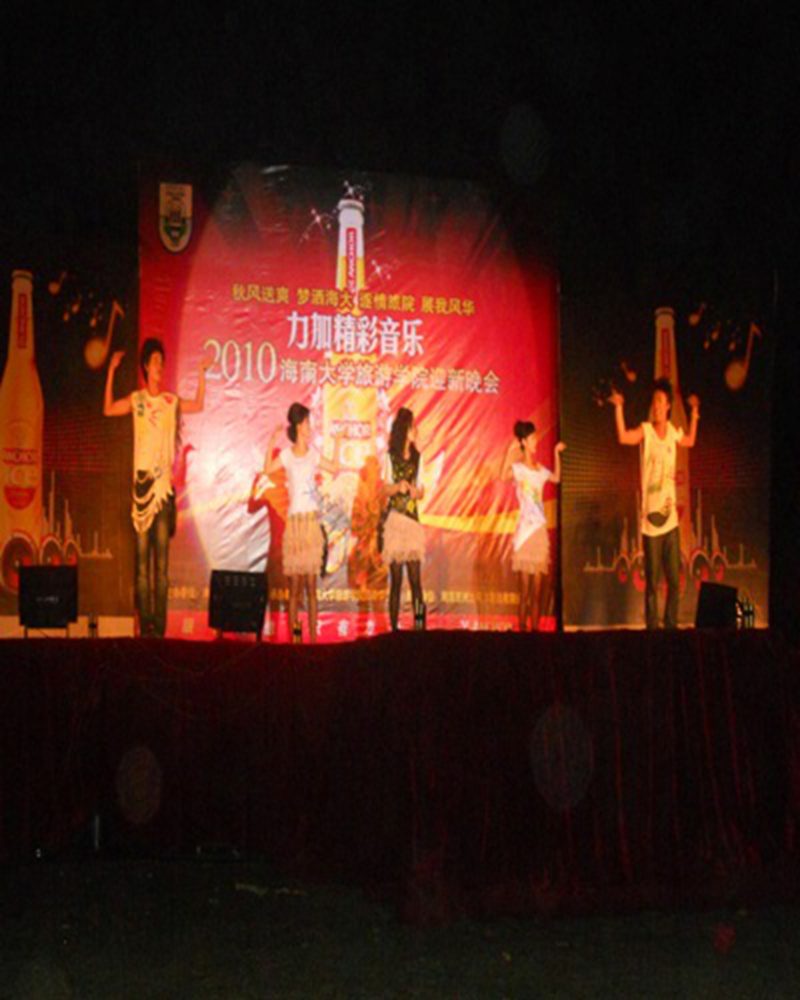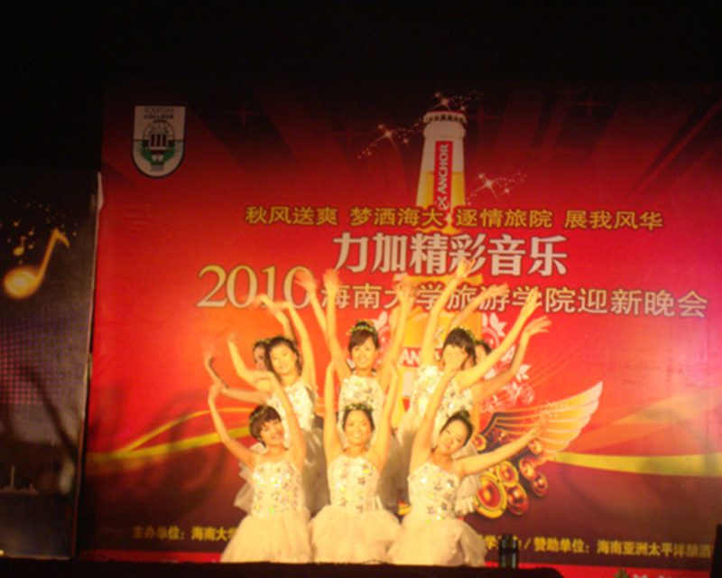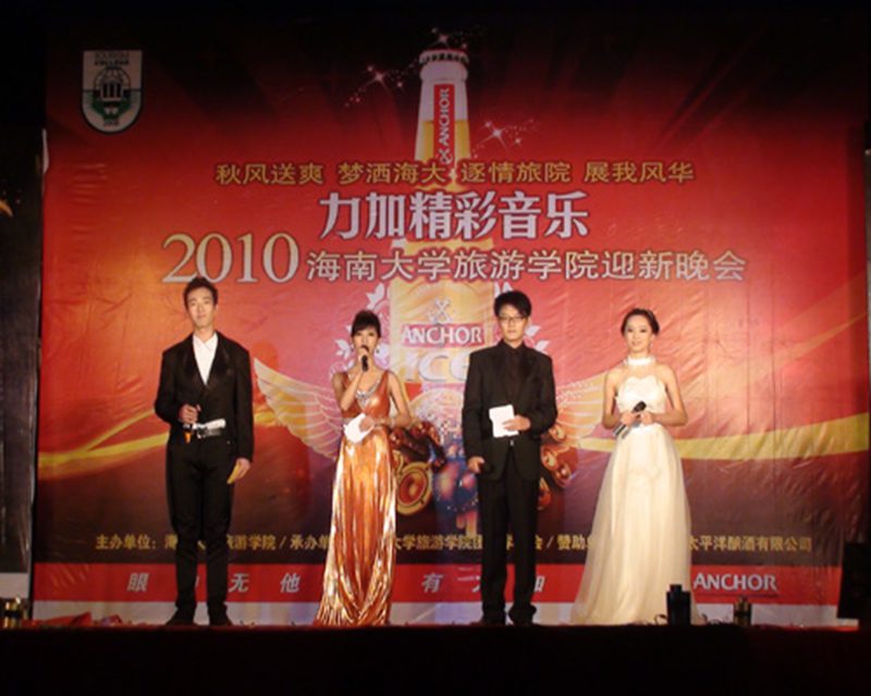 金风送爽,秋韵无边,2010年12月4日晚,由旅游学院主办的2010届旅游学院迎新晚会在海南大学起点草坪隆重举行。旅游学院王琳院长、院党委吕裕昌书记、龙华区团委熊玮书记、材化学院学工办王久模主任、海洋学院学工办李丽副主任、法学院团委林勇书记、园艺园林学院团委李丹老师及各兄弟学院学生会、社团负责人都出席了本次晚会。