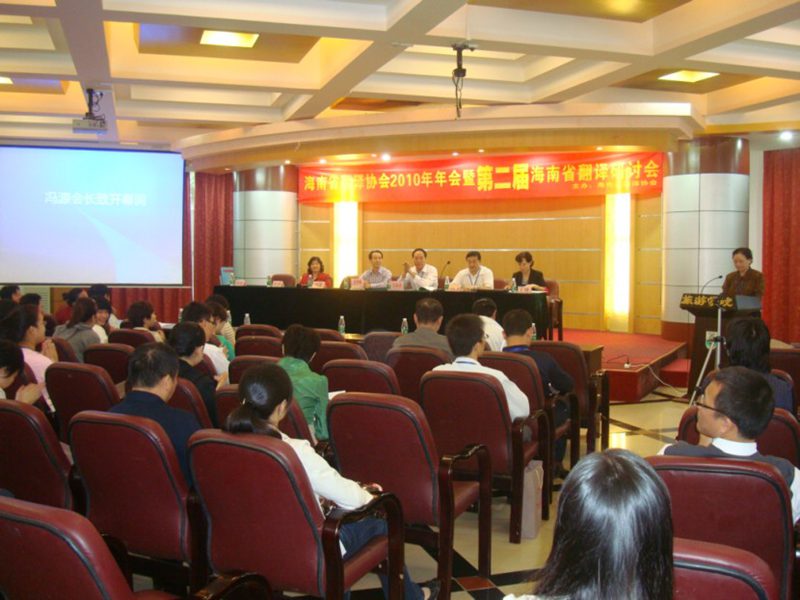 由旅游学院承办的海南省翻译协会2010年年会暨第二届海南省翻译学术研讨会于12月5在学院多功能厅隆重举行。海南省翻译协会会长冯源,海南省科协学会部吴钟海部长,海南省翻译协会秘书长、旅游学院院长王琳,旅游学院党委书记吕裕昌、副院长郭强出席研讨会。来自海南大学、海南师范大学、海南医学院、琼州学院等院校的学者参加了研讨会。