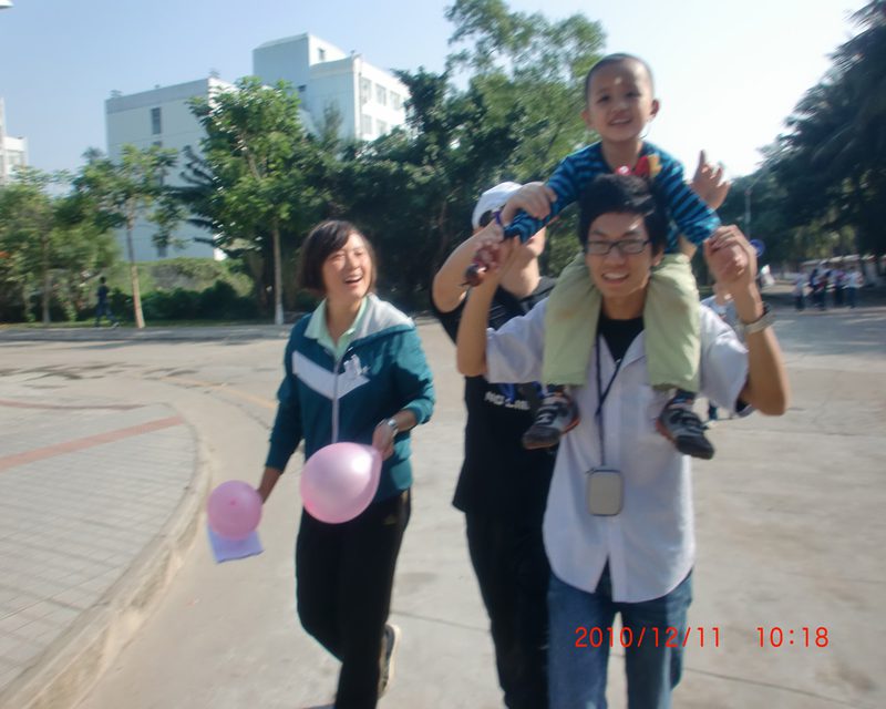 为了使孩子们充分享受到阳光并尽快融入校园,志愿者跟老师一起,把孩子带到学校一教前,在那里,小朋友跟自己临时的“爸爸”、“妈妈”一同喂鱼,作画,拍照,大家吵着、叫着、画着,现场一片和谐欢腾。这些简单的小活动,让小朋友与自己的“爸爸妈妈”都有了近距离的接触,通过这些活动,小朋友们渐渐敞开自己的心扉,把他们小小的手放到志愿者的手上,这不经意的举动让大家感受到,这些孩子需要我们伸出双手,张开怀抱……接着各个临时“家庭”带着自己的宝贝到第一田径场会合,在那里,大家有的照顾孩子玩转盘、有的保护孩子玩双杠。好多志愿者抱着这些可爱的小朋友,他们就像对待自己的孩子一样的亲,轻声细语的和孩子们喃喃的说着话,而孩子们就像回到了自己父母的怀抱,紧紧搂住他们,依赖、留恋、开心都写在孩子们的脸上。当大家全部到了田径场以后,志愿者跟孩子们一起玩起了“老鹰捉小鸡”,“抬轿子”,“蒙眼抓人”的游戏。整个操场都是欢声笑语,其乐融融,场面像是一个幸福大家庭的聚会。