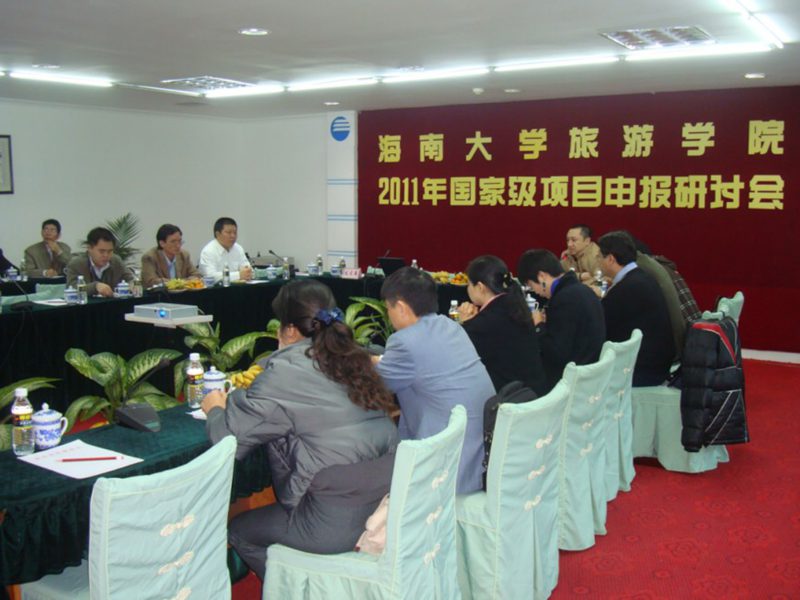 2011年2月14日上午九点,旅游学院在中改院五号楼第二会议室召开2011年国家级项目申报研讨会。王琳院长、陈扬乐副院长、郭强副院长、经济与管理学院柯佑鹏副院长、来自台湾的王惠正博士及学院科研骨干出席会议。会议由郭强副院长主持。