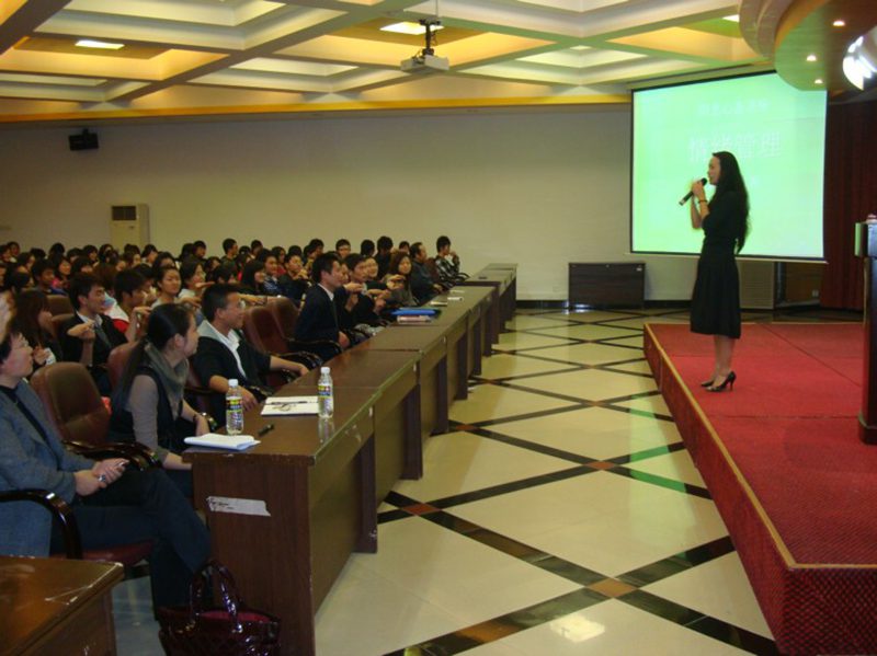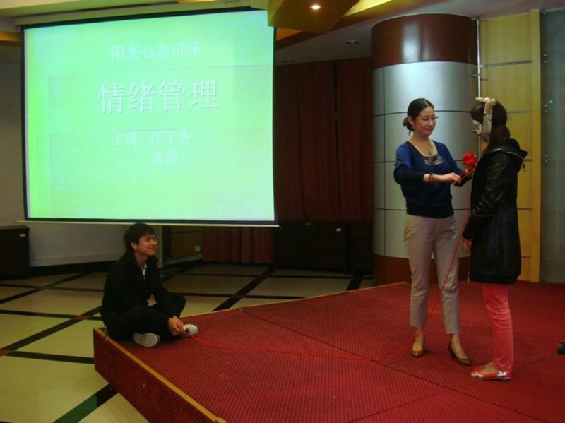讲座围绕“信念系统” 、“大学生的情绪管理” 、“大学生爱情观”三个主要内容展开,两位老师通过讲述、活动、游戏、现场模拟等方式,告诉同学们几个管理情绪的技巧,自我情绪调控的具体方法,克服恐惧的方法等,让同学们学会表达及处理自己的情绪。