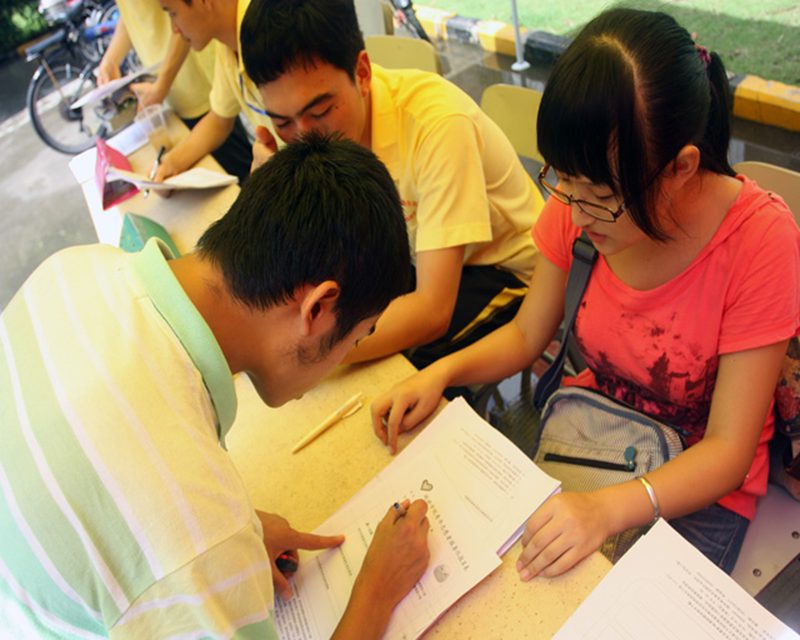 加入志愿者的同学在填表