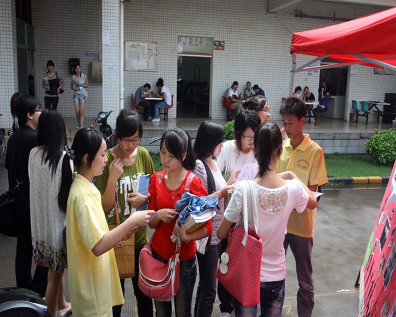 为了让更多的同学参与其中,在招募前期我院制作了各种精美的海报,张贴在学院的各个宣传栏,吸引同学驻足观看,与此同时,我院团委的工作人员还下到同学们的宿舍进行宣传,在宿舍,同学们的反响都很热烈,积极询问各种有关志愿者活动的问题,有的同学还发表了自己的一些看法,其中一位同学这样说道,“清扫垃圾我们不怕脏,最重要的是体会到参加公益活动,为社会服务后的喜悦。”一句朴实简单的话,却道出了志愿者的心声!在下宿舍招募的过程中我们还收到很多已经填好的报名表,从这些看似不经意的举动中我们看到的不仅仅是同学们希望加入到我们青年志愿者服务队的热切,更看到他们服务社会,服务大家,携手建设这个用爱心撑起来的和谐社会的决心!这为接下来的各种宣传及摆点招募工作的顺利开展开了一个好的彩头。在摆点处,工作人员向前来咨询的同学分发报名表并为他们进行热心地解答,这不仅让同学们更进一步地了解我们的志愿者团队,还帮助同学们加深理解了参加大学生公益活动以及为社会奉献的意义与价值所在!
