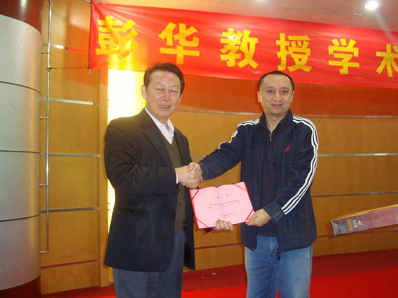 郭强副院长(右)为彭华教授(左)颁发客座教授聘书