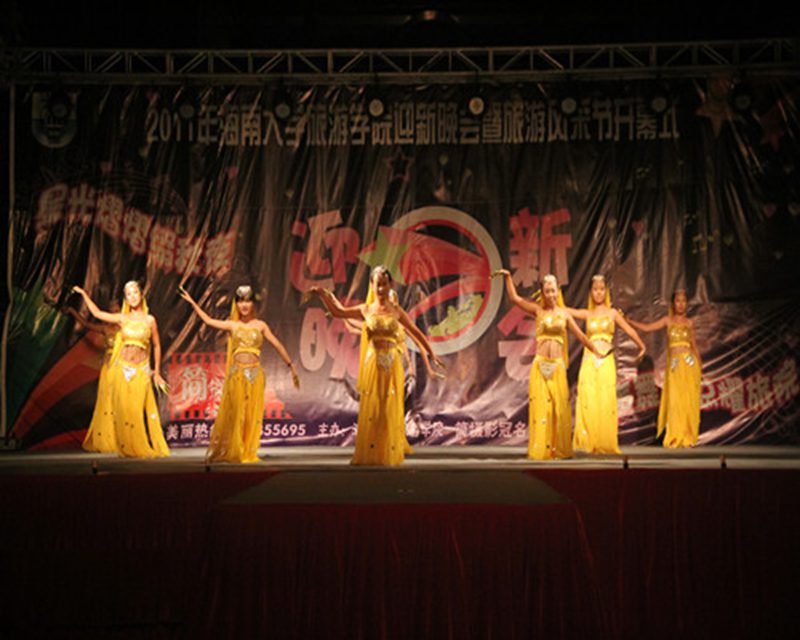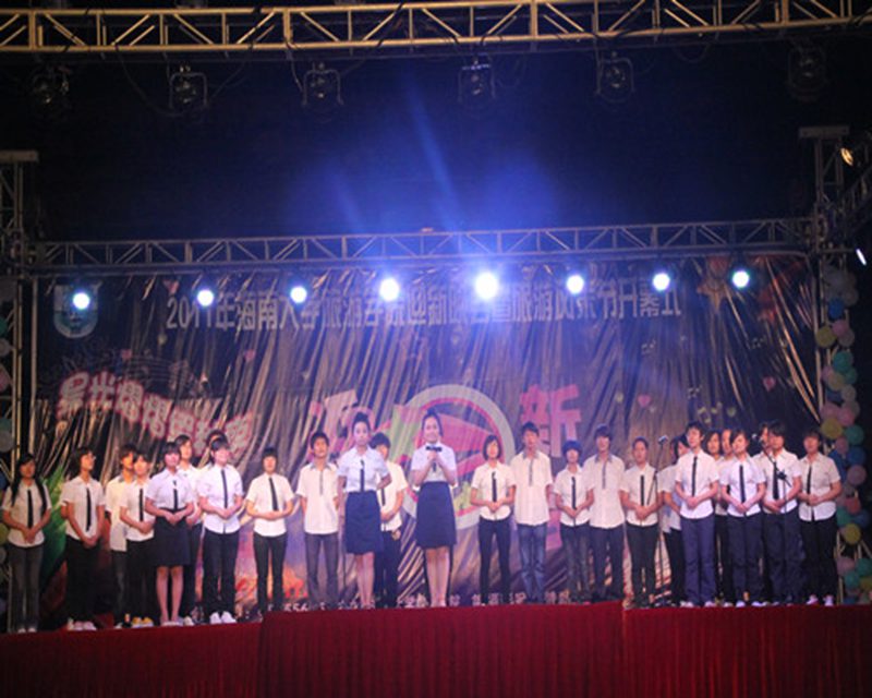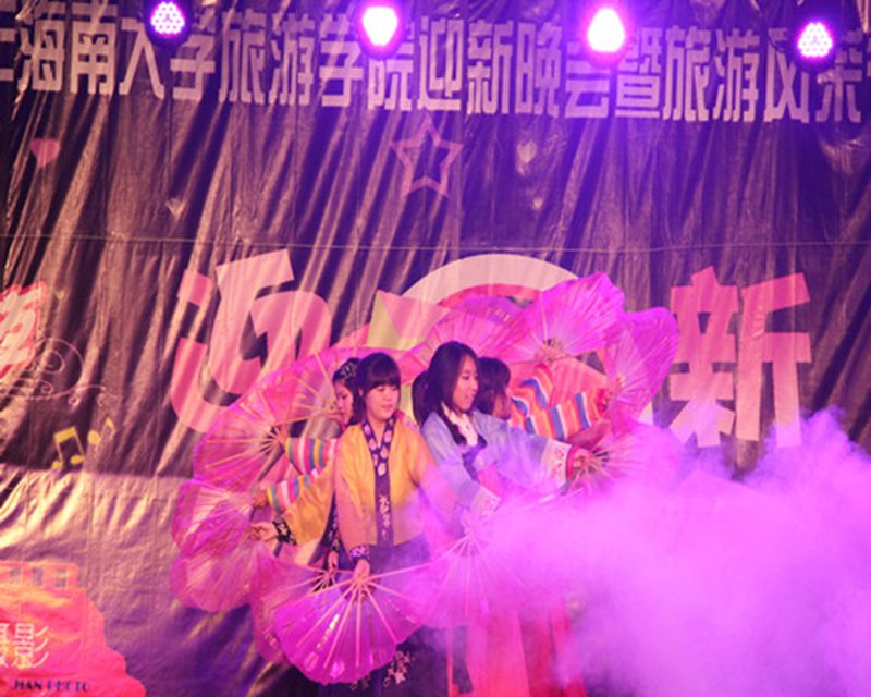 星光熠熠,梦萦海大,声舞不息,争奇斗艳,莘莘学子,山耀旅院。配上给力的音响,给力的灯光,给力的主持,2011年旅游学院迎新晚会暨旅游风采节开幕式于11月5日19:30在旅院三教广场盛大开幕。院党委吕裕昌书记、金晟副书记及部分兄弟学院的老师和学生组织的主要负责人出席了本次晚会。在院党委吕裕昌书记表达了对晚会的期待与祝福后,晚会正式拉开帷幕。