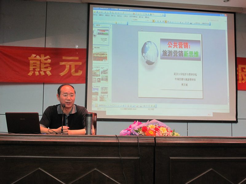 2012年4月7日晚上19:30 ,武汉大学市场营销与旅游管理系博士研究生导师熊元斌教授应邀于海南大学旅游学院4号教学楼多功能厅进行了题为“公共营销——旅游目的地营销新思维”的学术报告会。熊教授首先以互动的形式探讨了旅游的快感消费论,以对于旅游实质的创新认识为切入点,通过丰富的旅游目的地营销案例解析,生动的海外阅历介绍提出了旅游目的地营销的新模式——公共营销模式,深入浅出地阐述了以市场为中心,以旅游吸引物与目的地营销为基本点,以主题形象、标志性产品、生态环境、公共服务为支撑,以游客价值、区域竞合、社会责任为导向的目的地公共营销模式。在教授的快乐体验教学中,09市场营销系的同学们、与会嘉宾都感觉深受启发与鼓舞。