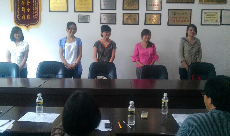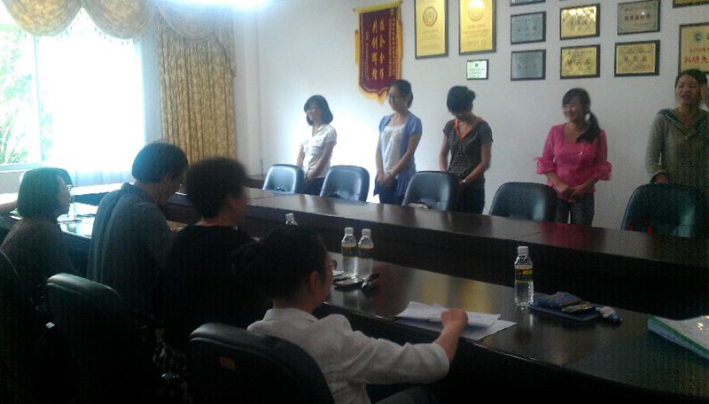 面试小组组成成员有王琳院长、陈扬乐副院长、冯艳昌老师、毛春洲老师、付迎老师、余力力老师、符涛老师。面试分为2组进行,全程采用英语进行交流。本次面试主要分为三个环节:第一环节是两到三分钟的英语自我介绍,第二环节是自由提问环节,第三环节是无领导小组讨论