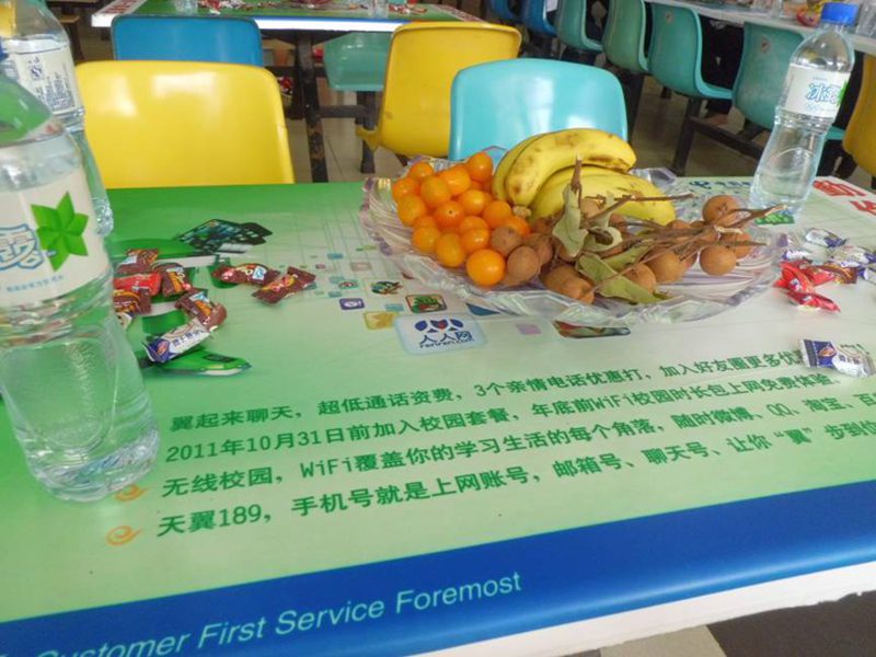 学院后勤提供的矿泉水、糖果和水果
