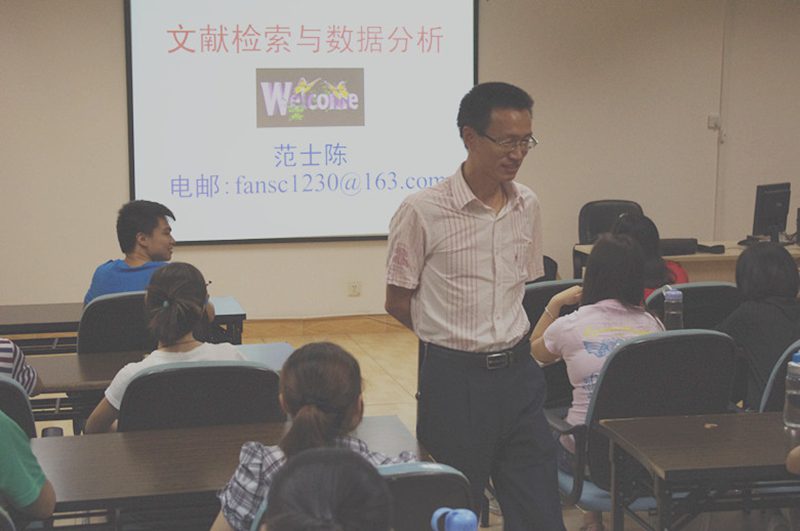 2012年5月8日晚上七点半,由海南大学旅游学院研究生会举办的第二期“研学讲坛”在8教202室顺利举行。本次讲坛的主题是《文献检索与数据分析》,邀请海南大学“十佳教师”、旅游学院旅游管理系范士陈教授主讲,旅院研究生会指导老师陈青老师也亲临现场指导,同时还有来自各个学院的研究生以及本科生到场聆听,讲坛现场座无虚席。