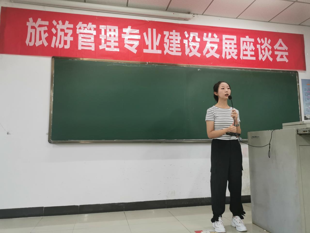 接下来,旅游管理专业本科在校学生先后踊跃发言,就目前学习遇到的问题、困惑向各位校友、专家请教,2018级王辰露同学就如何树立专业自信、如何发挥主观能动性充分利用学校教育资源、如何扩展自己眼界等谈了自己的心得体会,并对同学们发出努力学习、陪伴学科共同成长的倡议。