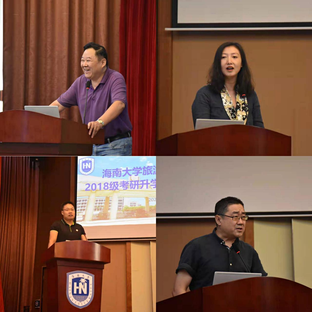 首先,郭强院长从为什么要考研,为什么是现在考研,为什么能考上三个方面,结合当今时代形势分析进行了动员讲话。接着,四位系主任依次分享经验和建议。袁国宏老师结合自己经历指出考研是促进自己进一步发展的重要机会;刘雪莲老师从设立考研目标、辨析考研动力和院校专业选择三个方面给同学们提供了宝贵建议;潘志新老师在分享中着重说明了选择、努力和心态的重要性,并提醒同学们要制定合理的备考计划;吴波老师强调人生规划的重要性,指出尤其在毕业之际,时间是宝贵的,同学们要尽早确定符合社会潮流,顺应时代发展的生涯规划。