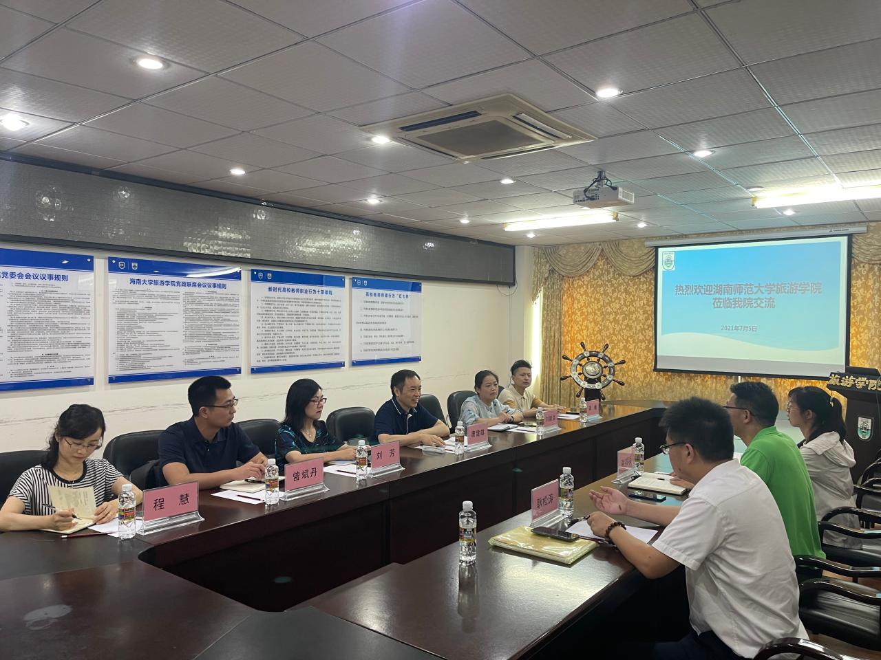 在听取了学院整体情况的介绍后,湖南师范大学旅游学院唐健雄主任一行对我院的热情接待和经验分享表示感谢。他表示海南大学旅游学院作为国内培养酒店及旅游管理人才的知名学府,希望能进一步加强与我院的交流与合作,借鉴我院国际办学、人才培养等方面的先进经验,提高学校办学水平,助推湖南省旅游业高质量发展。
