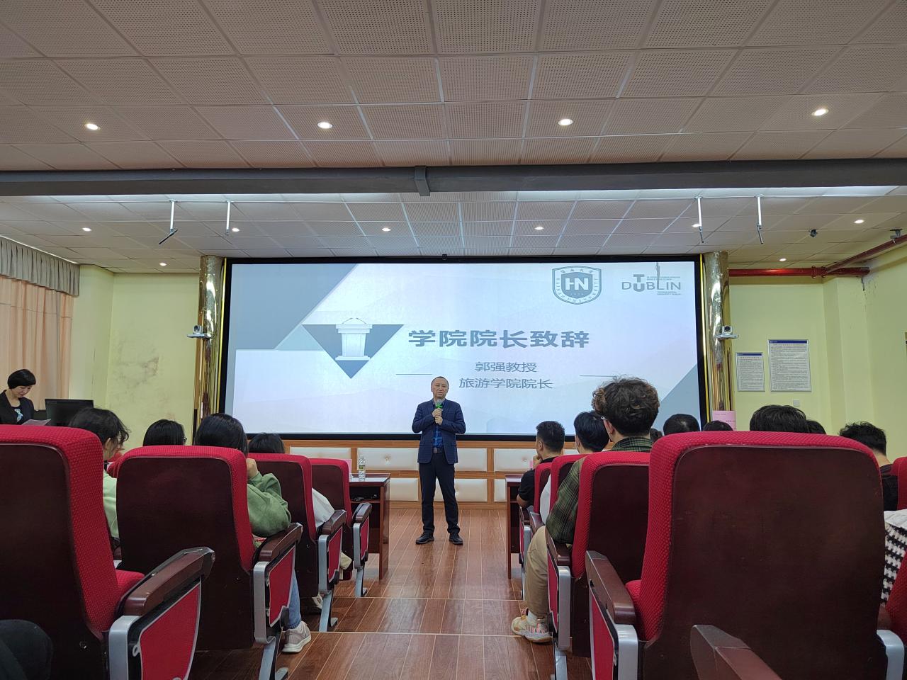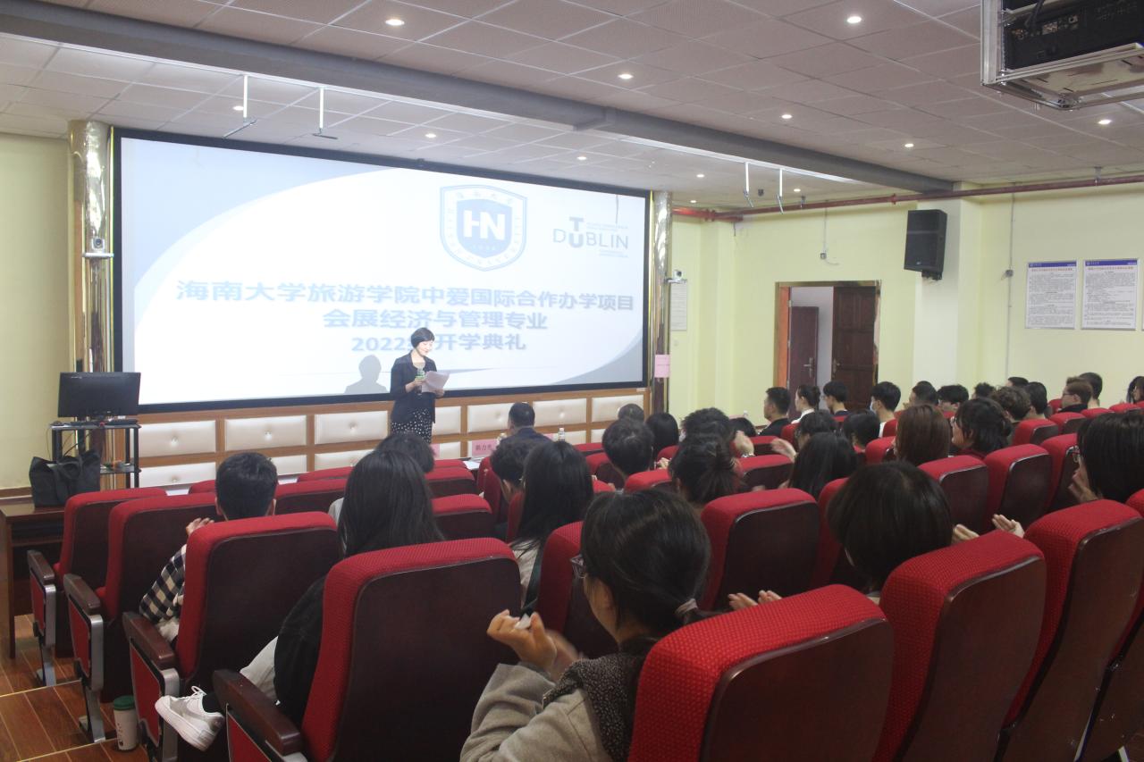 2月21日下午,海南大学旅游学院中爱国际合作办学项目2022级新生开学典礼暨见面会在九教多功能厅举行。海南大学旅游学院院长郭强、党委书记韩力光、副院长刘雪莲、教师代表韦震等出席了本次典礼。项目工作人员和项目2022级全体新生参加。典礼由学院刘雪莲副院长主持。