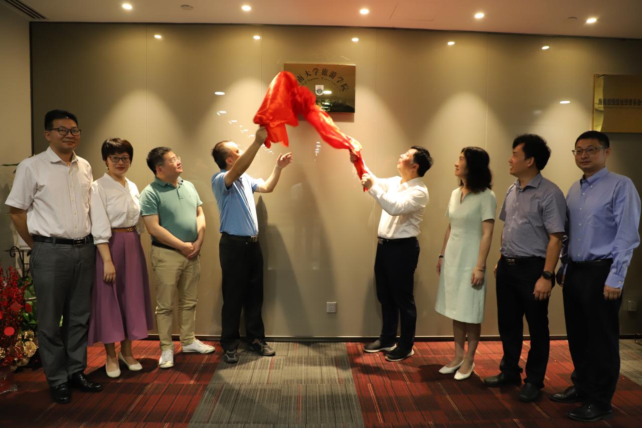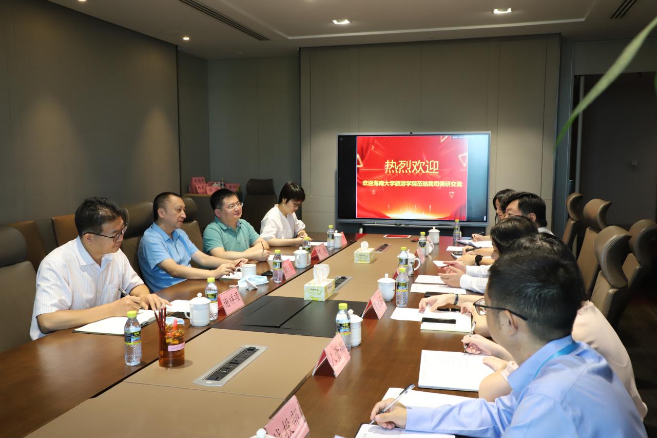 2022年6月21日,郭强院长一行4人访问了海南省旅游投资开展有限公司(以下简称海南旅投),海南旅投陈铁军董事长等给予了亲切会见。双方在如何促进校企合作、共建研究机构等方面进行了深入会谈。郭强院长简要介绍了学院概况,阐述了学院紧密对接海南国际旅游消费中心建设的发展理念。陈铁军董事长简要介绍了海南旅投。海南旅投是海南省委、省政府为贯彻落实习近平总书记“4·13”重要讲话和中央12号文件精神批准设立的省属国有独资企业,定位为海南省国际旅游消费中心建设投资发展运营商,致力于成为国际旅游消费中心的引领者、全岛旅游产业链的整合者、国际旅游岛的建设者、旅游国际合作的平台,主要业务板块包括旅游交通、酒店运营、旅游购物、景区度假区、文体娱乐、海洋旅游、旅游金融等七大板块。陈铁军董事长表示,海南旅投非常期待与海南大学旅游学院的合作,希望双方今后在定向人才委培、学生实习、共同发起成立海南旅游研究院、构建海南旅游协同创新中心等方面深入协作。郭强院长表示,学院也非常期待与海南旅投在上述领域的合作,为海南旅投的发展在人才培养、智力咨询等方面做出自己的贡献。副院长何彪、谢祥项、张珊,海南旅投副总经理吴媛菲、党建部兼综合部部长王如龙、人力资源部负责人符莹等参加了座谈会。会后,郭强院长、陈铁军董事长等共同为海南大学旅游学院-海南旅投“实习实践教学基地”揭牌,标志着双方深入合作迈入新篇。