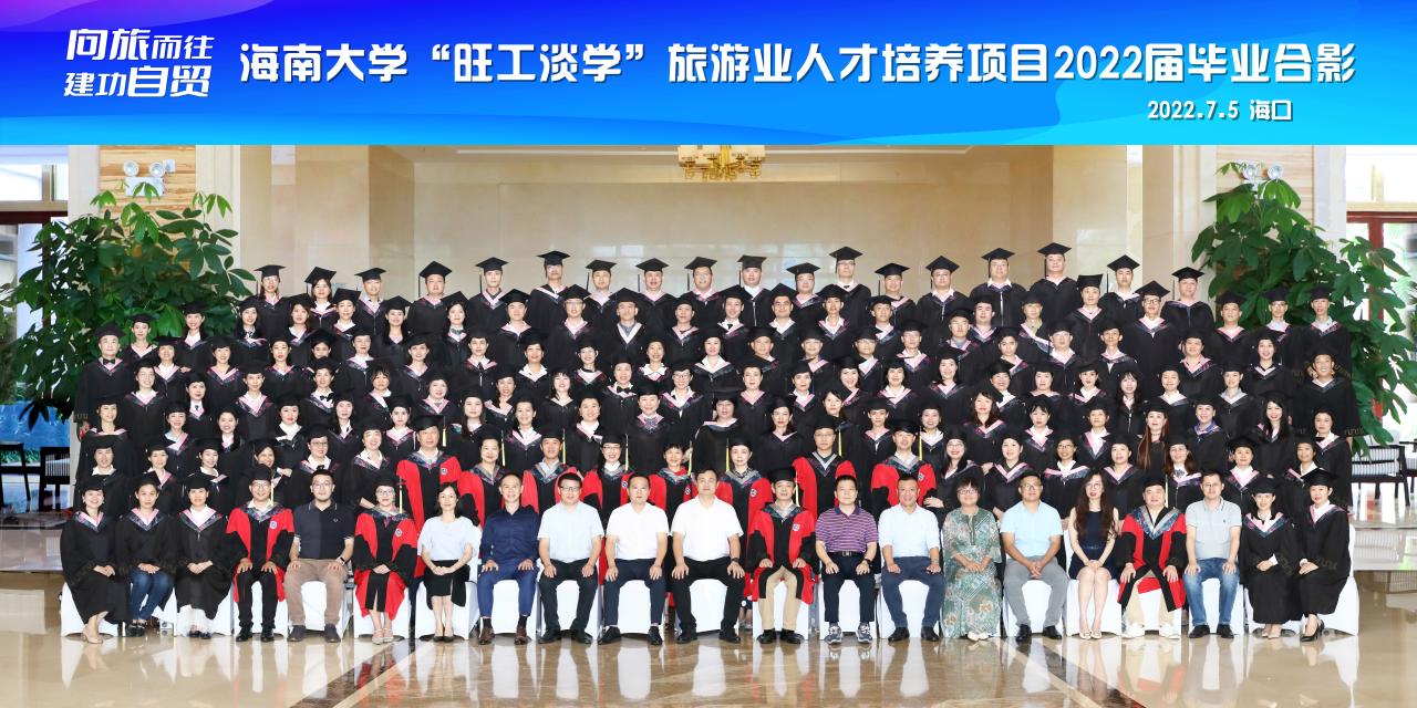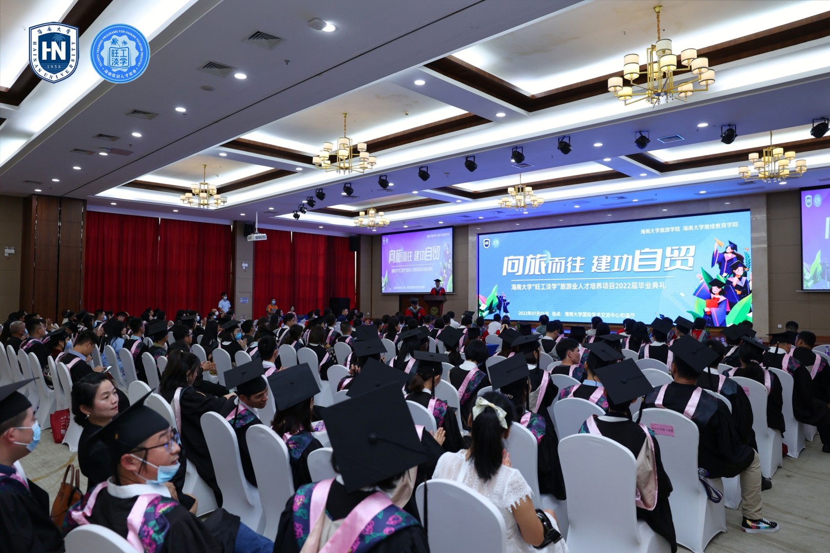 2022年7月5日,海南大学“旺工淡学”旅游业人才培养项目2022届毕业典礼在海口隆重举行,省旅文厅人教处李恩处长、省教育厅高教处刘世琼调研员、中国旅游饭店业协会副会长及省旅游饭店业协会执行会长刘凯强、海南省旅游协会廖小平秘书长、三亚旅游行业协会联合会总干事邓勇波、海南大学旅游学院郭强院长、韩力光书记、继续教育学院李仁君院长、部分代表性酒店总经理和人力资源总监、2022届221位毕业生及部分家长近200人参加了毕业典礼。