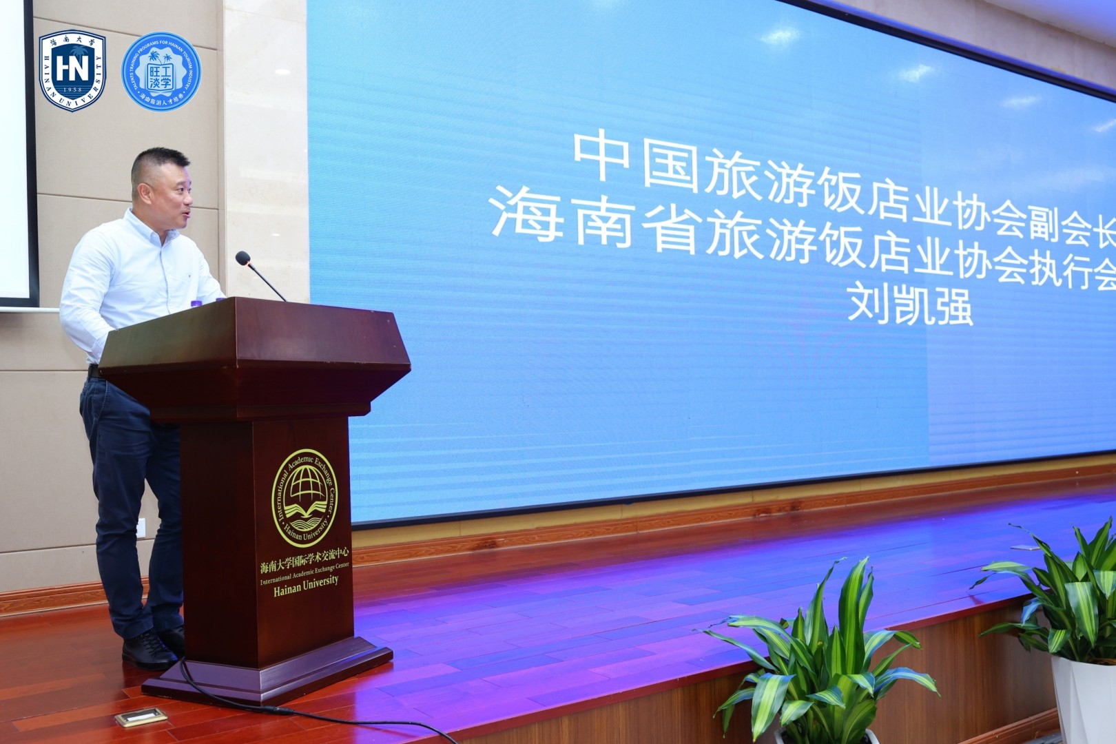 中国旅游饭店业协会副会长、海南省旅游饭店业协会执行会长刘凯强代表涉旅行业协会对首届毕业生赋予了“祝贺、感恩、奋进”的亲切引导,表示将从行业协会的角度一如既往的支持“旺工淡学”项目的创新发展。