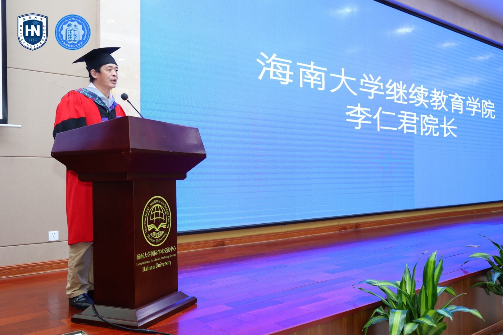 海南大学继续教育学院李仁君院长在致辞中对“旺工淡学”项目首届毕业生表示祝贺,对旅游学院的培养过程和培养措施给予充分肯定,对学校继续教育管理和服务做了详细介绍。