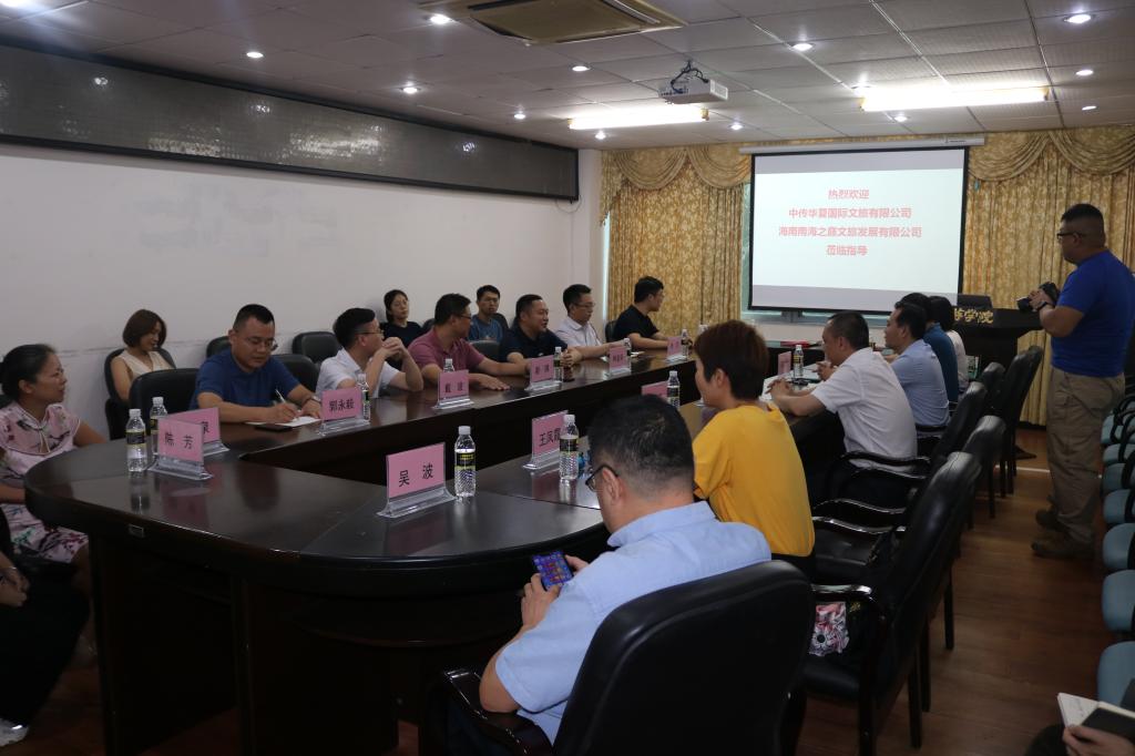 双方在座谈会上就合作协议内容和下一步的合作细节进行了深入探讨,海南南海之巅文旅发展有限公司谢琪总裁、中传华夏国际文旅有限公司党支部书记、总经理林金华、 经营中心戴波主任、副总经理冉志、海南办事处主任郭永毅、IP事业部副总经理冯梦龙,旅游学院郭强院长、学院党委韩力光书记、谢祥项副院长、侯佩旭副院长(挂职)、本科专业负责人王凤霞教授、吴波博士以及综合办、学工办负责人参加了座谈交流会。