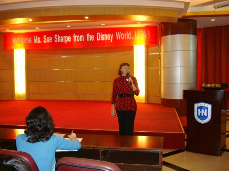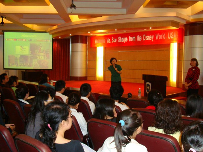 2009年4月29日,美国迪斯尼乐园国际实习生项目介绍暨招聘会在海南大学旅游学院多功能厅举办,美国迪斯尼乐园国际部招聘经理Sue.Sharpe女士专程前来旅游学院进行项目介绍,并对有意向参加该项目的学生进行了面试。最后有18名学生通过了美国迪斯尼招聘经理的严格面试,按照迪斯尼乐园国际项目实习计划,他们将于2009年9月1日前往美国奥兰多迪斯尼乐园参加该国际项目的实习。被录取的有二年级的学生,也有三年级的学生,他们的专业或专业方向分别是旅游管理应用英语方向、旅游人力资源管理、旅游市场营销等。