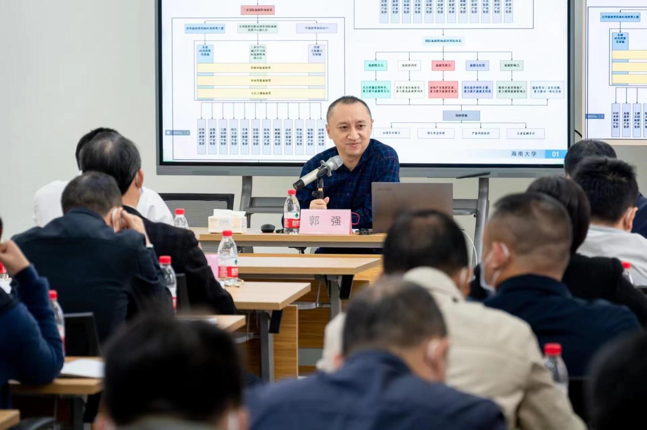 作为海南大学旅游学院院长,郭强还荣获“海南省南海名家”“海南省C类人才”称号。他长期研究服务运营管理,旅游业高质量发展,自贸港建设管理,国际旅游消费中心建设管理等内容,对海南旅游发展有深入的了解。在专题报告会上,郭强以“旅游胜地规划”为主题,以实例为切入点,从编制背景、主要特色亮点、主要内容和落实着力点,为崖州区如何做好旅游相关内容作了分析,并就崖州区如今进行文旅融合、产品梳理打造、品牌如何打造和传播、如何发挥国际化优势及如何识别和控制风险等提出了建议。