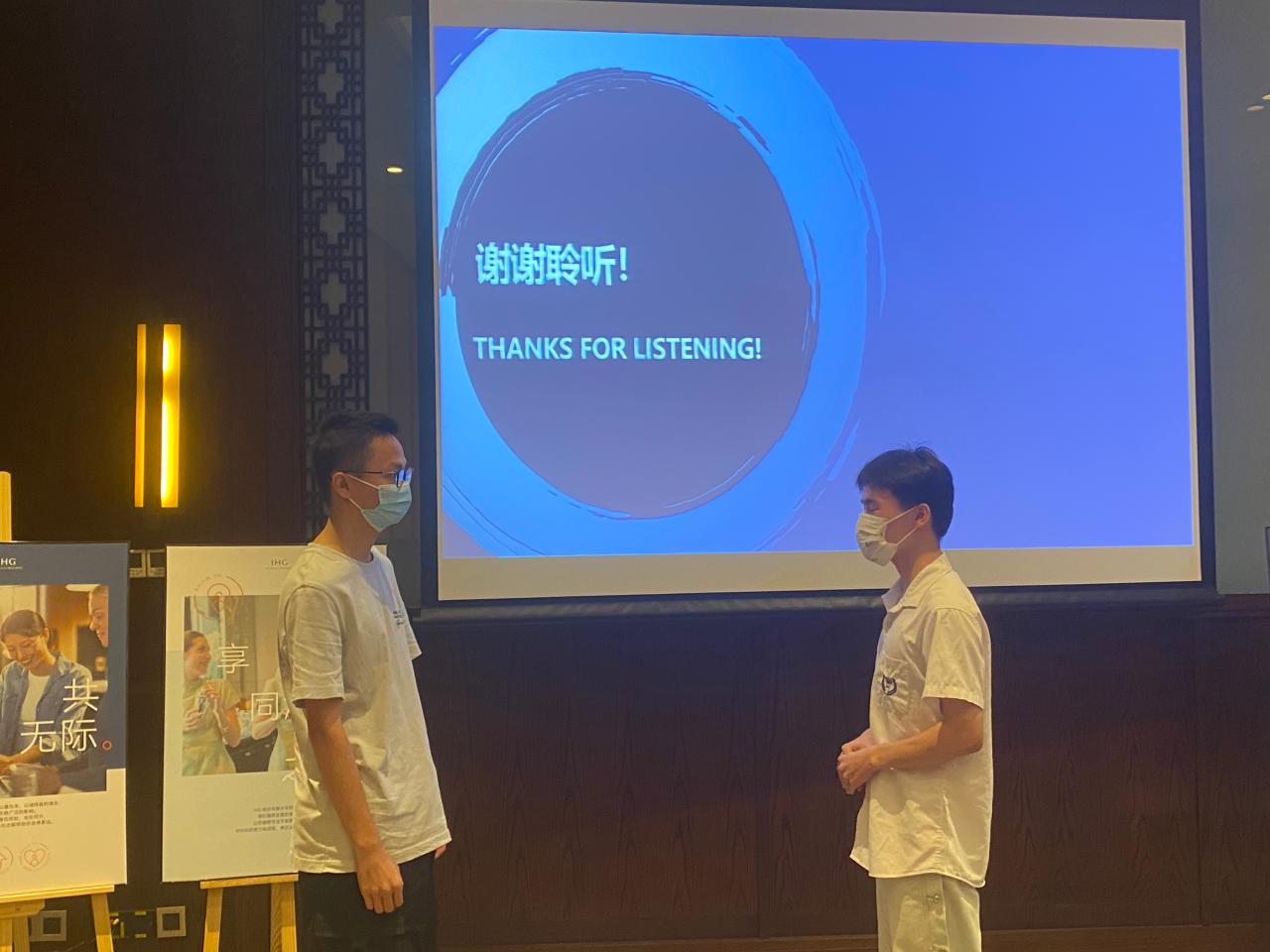 在课题汇报环节,我院2020级酒店管理专业同学分别从会员招募、问题处理、提高客房清洁度、为客人提供意想不到的惊喜、如何安抚客人在排队等候过程中的不良情绪、入住体验、如何减少自助餐食品的浪费等7个维度,全面而详细地对华彩洲际酒店在经营中可能改善的方面进行了总结列举,并有针对性地提出了解决对策。如会员招募小组为优悦会设计了全新的ip形象,惊喜服务小组提供了很多细节式打动人心的服务建议,减少自助餐浪费小组通过情景剧方式表达了不同类型顾客的真实想法并提出了具体的服务措施,入住体验小组更是完全以顾客的身份实地办理入住,以第一人称视频拍摄的角度带领大家沉浸式体验酒店服务全过程,并针对实际入住中发现的问题逐一阐述切实可行的对策建议。