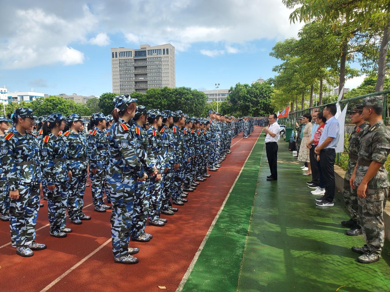 韩力光书记鼓励同学们结合自贸港的机遇努力学习,为自贸港建设增添力量。并教导同学们新学期开始要做好规划,开好头,为大学四年打好基础,同时军训期间要服从教官要求,遵守军训的各种要求,认真参训,上好“大学第一课”。