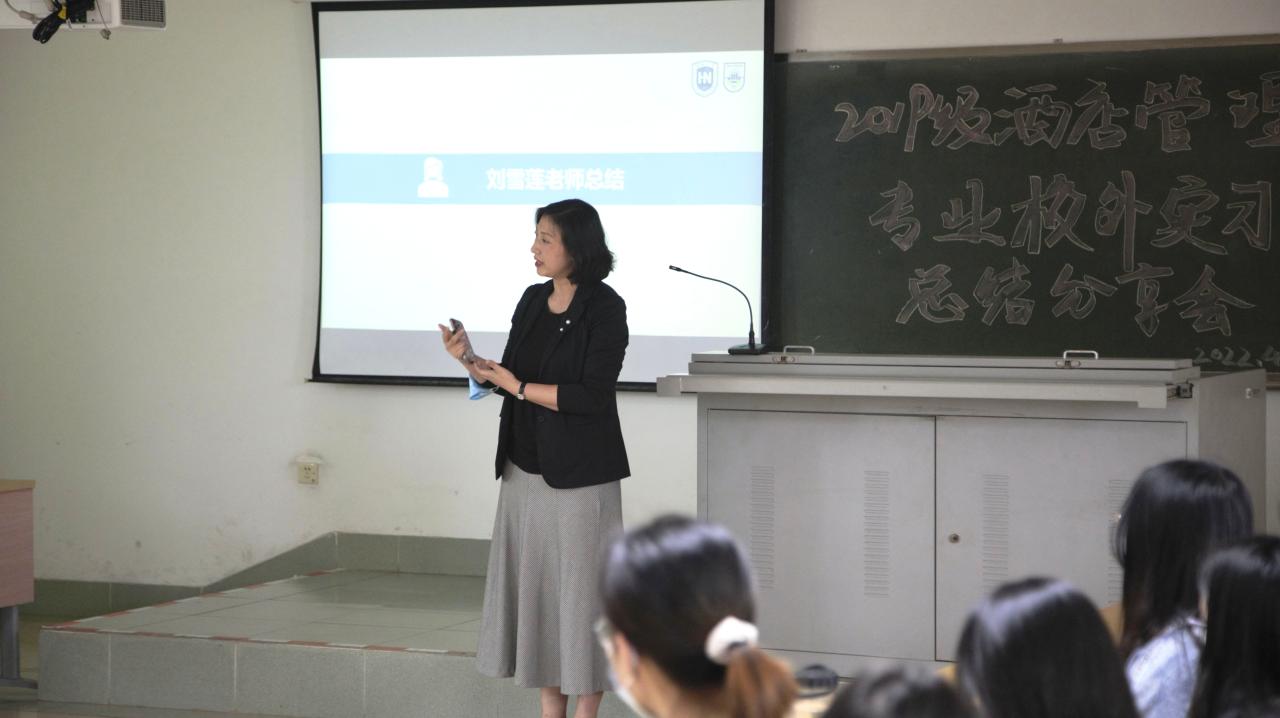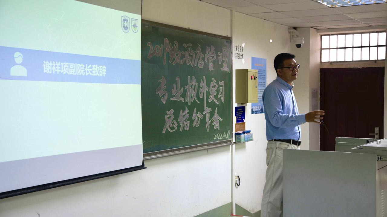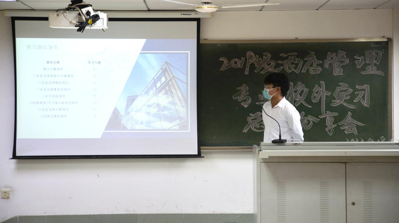 2021年4月19日下午,由海南大学旅游学院酒店管理系2019级师生筹办的校外专业实习分享会在8教404教室举行。出席本次实习分享会的师生有旅游学院党委书记韩力光老师,副院长谢祥项老师,酒店管理系系主任刘雪莲老师,杜肖寒老师,辅导员文金顺老师以及酒店管理系2019级和2020级全体同学。
