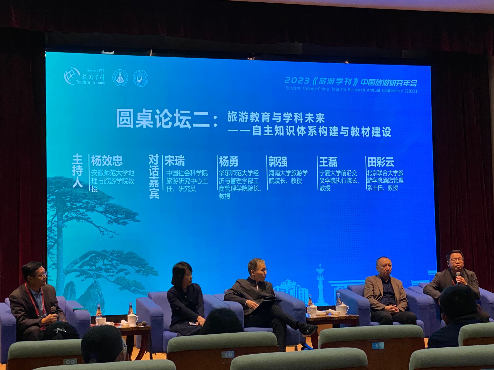 我院郭强院长和部分师生参加了年会,其中郭强院长参加了旅游教育与学科未来——自主知识体系构建与教材建设的圆桌论坛,胥兴安教授和童昀副教授分别担任了分论坛的点评嘉宾和主持人。童昀副教授撰写的论文《国家重点生态功能区旅游资源开发的碳汇减损效应》、2022级旅游管理硕士研究生张衡撰写的论文《由刺点景观到景观刺点:基于对比的人景互动》获评2023年会优秀论文。
