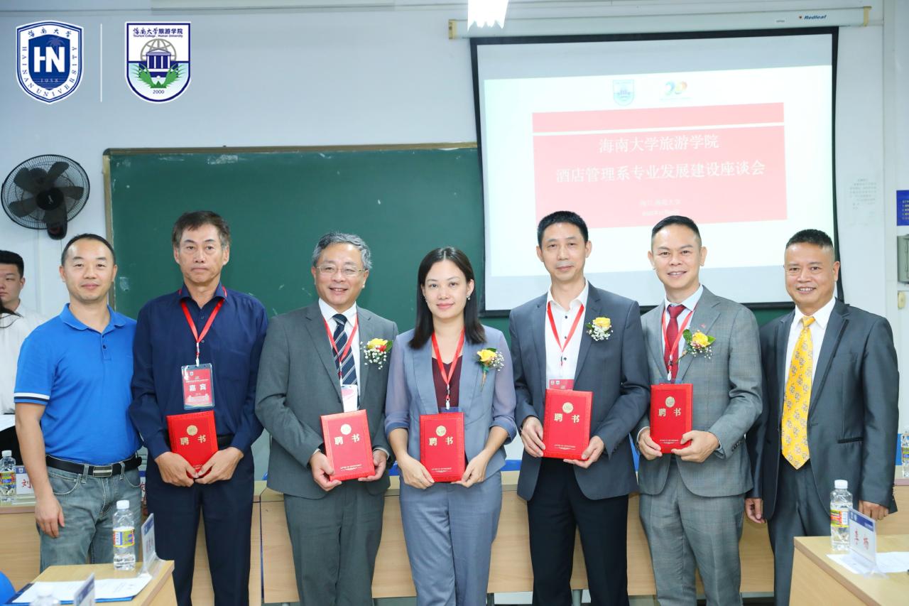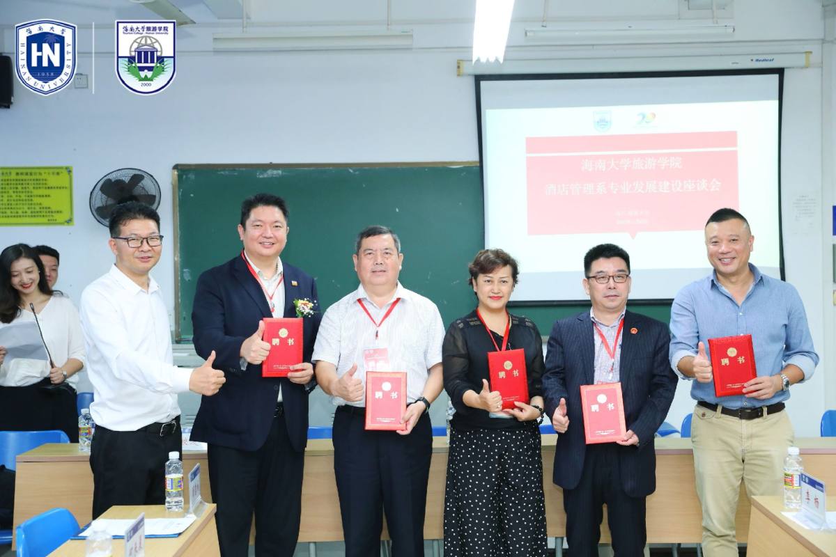 旅游学院酒店管理专业的发展壮大离不开各位业界精英人士的大力支持。会议第二项,由谢祥项副院长、宋子斌教授和黄建宏教授为海南省旅游饭店协会会长、热带野生动植物园总裁张会发先生、中国旅游饭店业协会副会长/三亚银泰度假酒店总经理刘凯强先生、世界酒店联盟主席吴军林先生、省旅游饭店业协会副会长/希尔顿酒店集团海南北区总经理孙金鹏先生、三亚亚特兰蒂斯酒店群人力资源副总裁陈玉华女士、石基酒店软件公司教育部负责人吴少勇先生、融创集团酒店事业部总经理陈茵女士、省酒店餐饮协会主席团主席/三亚国光豪生度假酒店总经理朱若郁先生、三亚蓝湾威斯汀度假酒店总经理孙彤先生以及海口华彩华邑酒店总经理邓湘黔先生等业界精英人士颁发了客座教授聘书。受聘客座教授均表示,愿同海南大学旅游学院一起,为培养出更多优质的酒店管理专业人才而努力!