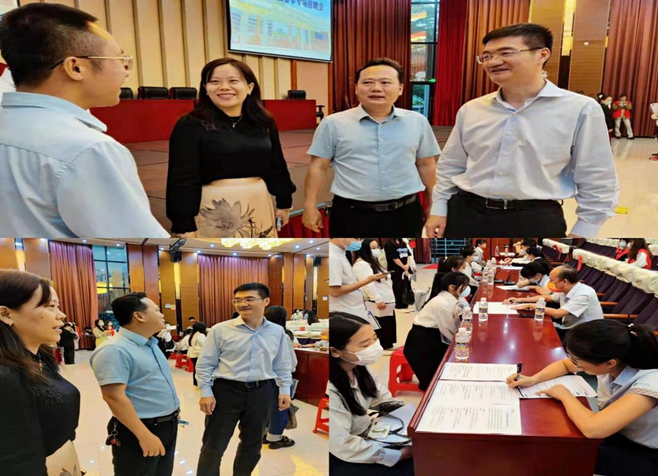 各参会企业通过宣讲的方式,向同学们介绍了各自企业目前情况、发展前景及招聘岗位等相关信息。参会的同学们准备充分,携带简历等相关应聘材料来到招聘会现场,积极主动地与各企业HR交流,了解企业文化、工作环境、薪资待遇等情况,招聘双方相互交流,现场气氛热烈。在现场招聘和面试环节,叶光亮副校长也莅临现场,与参会企业和学生进行亲切交流。