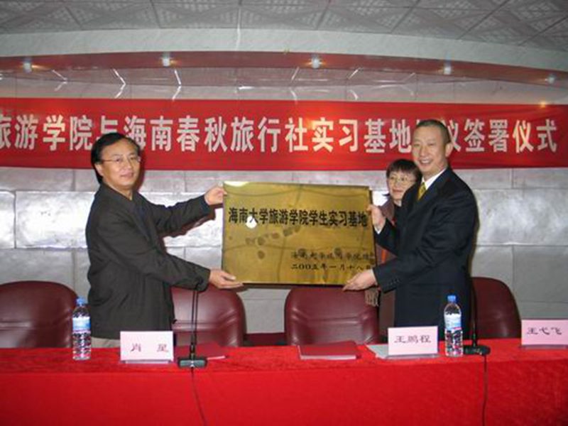海南大学旅游学院与海南春秋旅行社实习基地协议的签署仪式于2005年1月18日在海南大学旅游学院多功能厅举行。