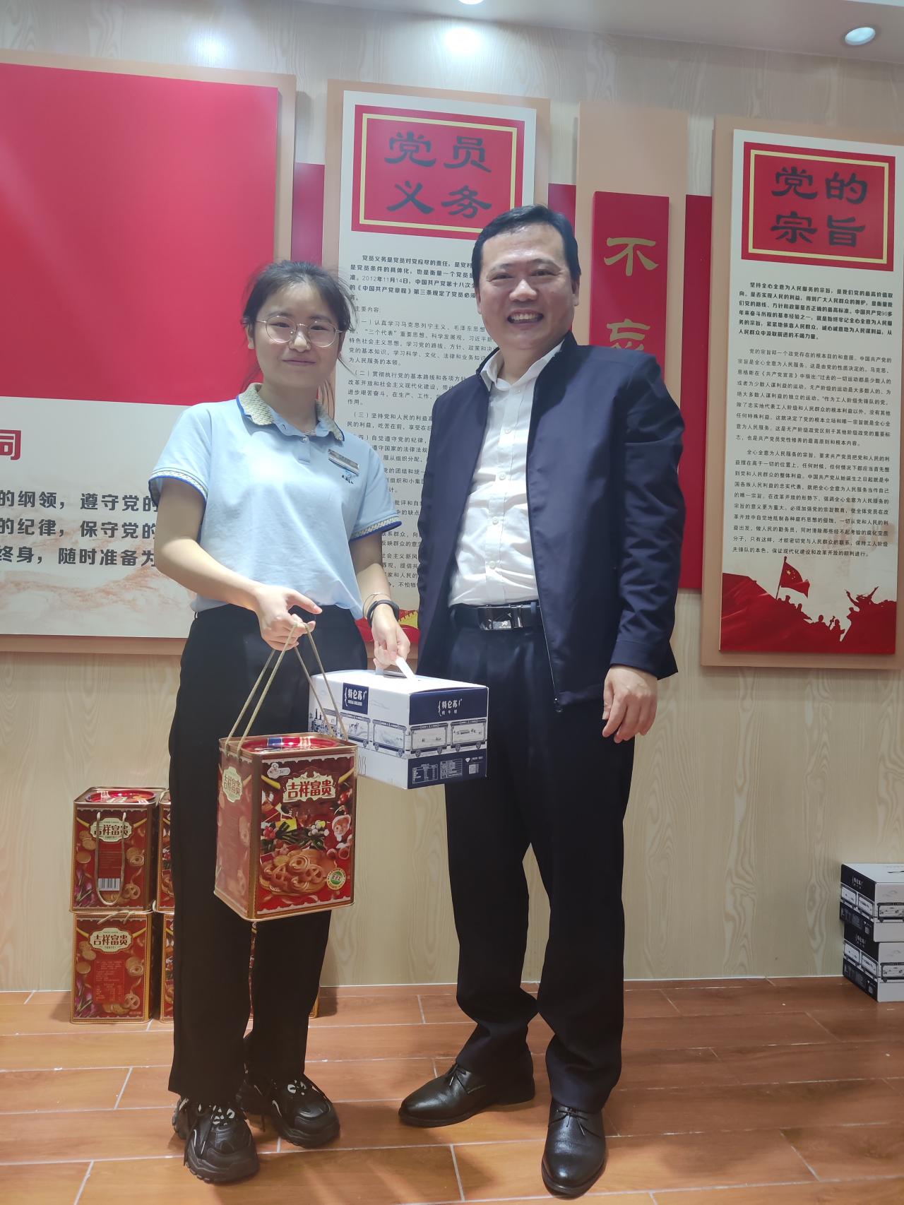 座谈会结束后,学院为在景区实习的学生和毕业校友送上暖心礼品。