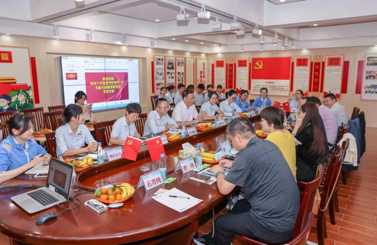 在双方领导进行座谈时,韩力光书记与三亚旅文集团党委副书记、纪委书记戴彬森就双方基本情况进行交流,表示双方有较好的合作基础和合作优势,希望加强沟通加强交流。通过校企合作,一方面,使学生在实践中加深对专业知识的理解,另一方面,也为企业输送专业素质过硬的人才。此外,除了在人才输送进行合作之外,双方还可以在研究课题、课堂教学等方面加强交流,结合学院的理论基础与景区的实践反馈,一方面,学院课堂教学引入实践新动态,另一方面,景区依托扎实的理论研究不断完善创新旅游产品,打造品牌,从而使产教融合进入新阶段,实现双赢。