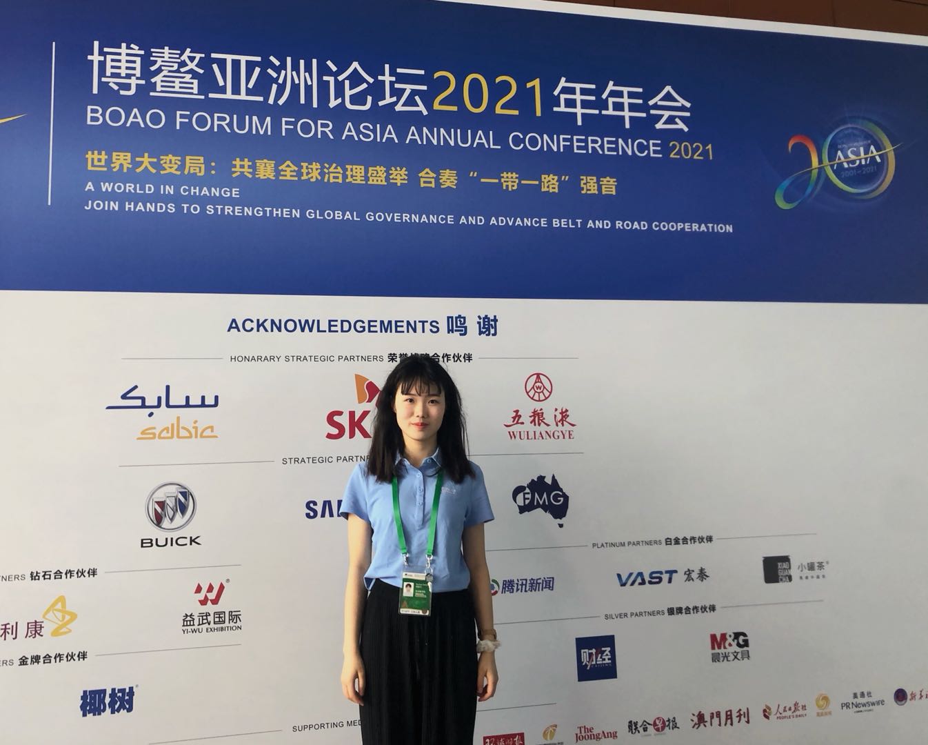 图为周吾珎同学参加博鳌亚洲论坛志愿者服务现场