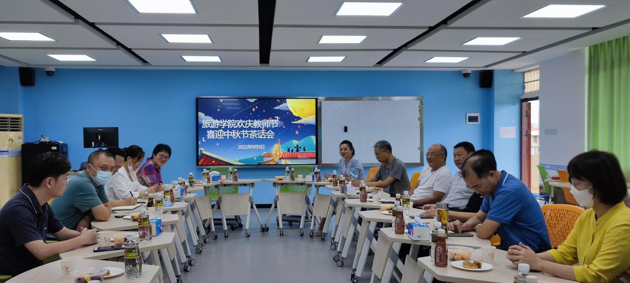 丹桂飘香,秋风送爽。2022年9月9日下午,在第38个教师节暨中秋节来临之际,旅游学院在8号教学楼503教室举行“欢庆教师节喜迎中秋节茶话会”活动,学院领导和部分教师代表出席活动。会议由学院党委书记韩力光主持。